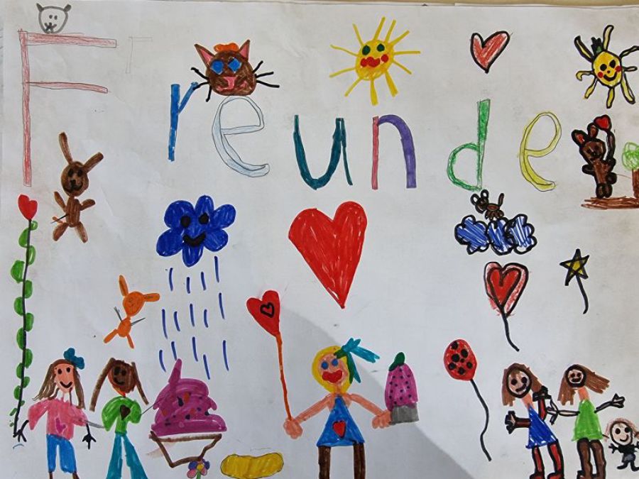 Das Highlight des Programms wurde von den kreativen Zweitklässlern gestaltet, die mit viel Enthusiasmus und Talent auf die Bühne traten. Sie präsentierten ein selbstgedichtetes Lied, das die Herzen der Zuhörer im Sturm eroberte. Auf bunten Plakaten hatten sie ihre Wünsche für die Erstklässler festgehalten – von „Ich wünsche dir viele Freunde“ bis hin zu „Ich wünsche dir viele schöne Pausen“ und "Wir wünschen euch viel Spaß!" war alles dabei und wurde mit großem Applaus belohnt. Besonders berührend war das Lied „Wir“, das von Toleranz, Freundschaft und der Einzigartigkeit jedes Menschen handelte. Die kleinen Sängerinnen und Sänger sorgten für Gänsehaut und ein paar feuchte Augen bei den Eltern.